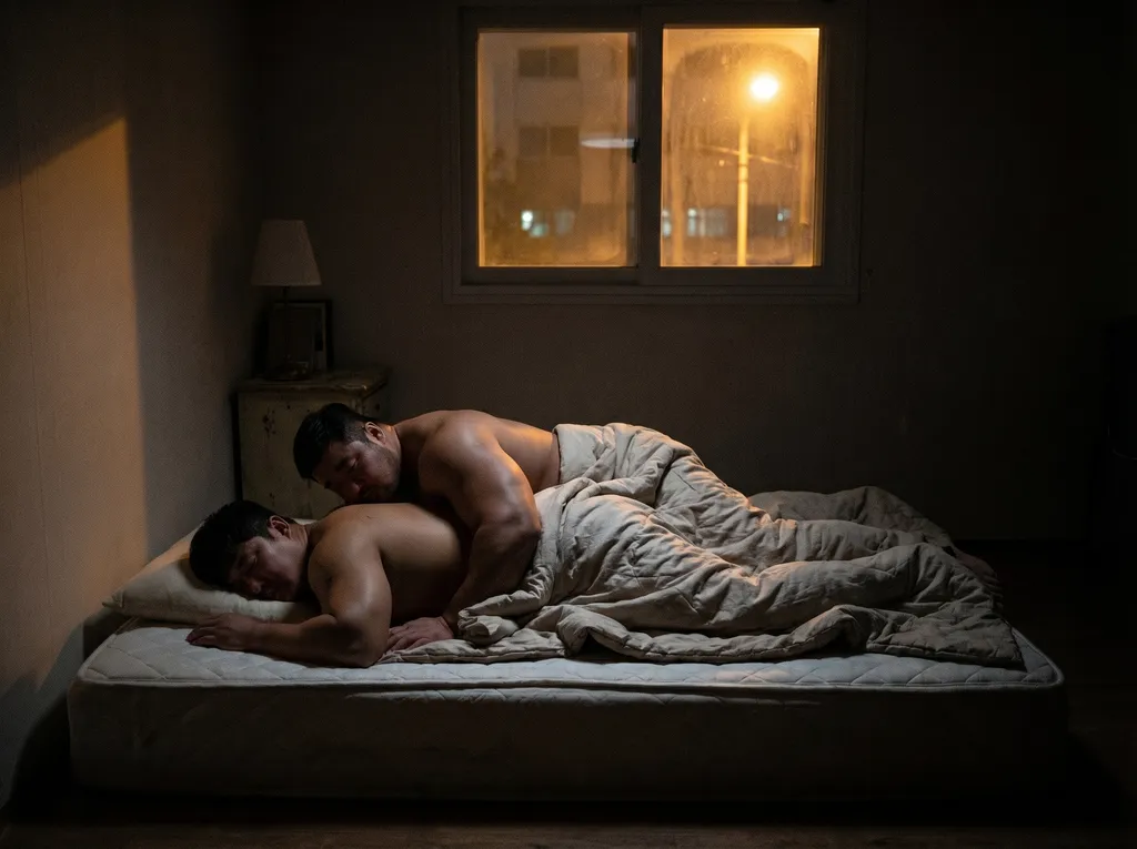 가로등 불빛이 희미하게 스며드는 어둠 속에서도, 녀석의 흉근은 놀라울 정도로 두껍고 묵직한 부피감을 자랑하고 있었다. 평생 거친 현장에서 땀 흘리며 단련된, 한 치의 인위적인 느낌도 없는 짐승의 몸. 까무잡잡하게 그을린 피부 위로 굵은 핏줄들이 어깨와 팔뚝을 타고 단단하게 얽혀 있었다.