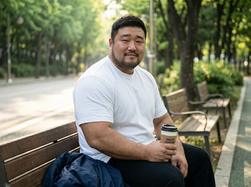 지하철역에서 내려 집 근처 약속 장소로 향하는 발걸음이 나도 모르게 빨라졌다. 멀리서부터 낯익은 거대한 실루엣이 보였다. 병운이었다. 그는 아침의 그 꾀죄죄한 바람막이 대신, 깨끗하게 세탁된 듯한 짙은 회색 맨투맨 티셔츠를 입고 서 있었다. 짧게 깎은 머리는 아직 덜 말랐는지 물기가 살짝 서려 있었고, 특유의 짙은 수염 자국은 아침 햇살 아래서보다 훨씬 더 야성적으로 보였다.