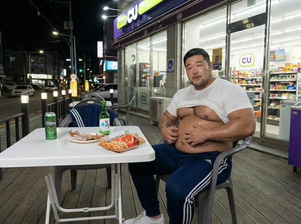 그게 시작이었다. 가로등 불빛이 파르르 떨리는 편의점 앞 플라스틱 테이블. 병운은 이미 서너 병은 비운 듯한 소주병을 툭 치며 낄낄거렸다. 그의 짧게 깎은 머리카락 아래로, 햇볕에 거칠게 그을린 목덜미가 보였다. 그리고 이전에는 잘 몰랐는데, 아침에 본 파란 트레이닝복 상의는, 그의 근육질 체격을 감당하기 버거운 듯 터질 듯 팽팽하게 당겨져 있었다.